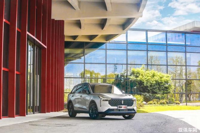 車身側(cè)面造型減少了不必要的棱線,通過更多地融入流暢曲面,使其在光影變幻下有著更好的視覺感觀?!叭龂矫妗保简vT55的長寬高分別為4437mm、1850mm、1625mm。此外,2650mm的軸距為駕乘者帶來了充裕的前后排空間和更霸氣的外觀。