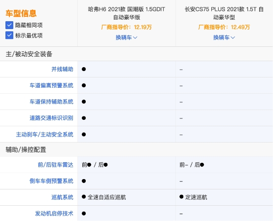 對比同級長安CS75 PLUS來看。價位相同,配置不同的哈弗H6國潮版1.5GDIT豪華版與長安CS75 PLUS 1.5T豪華型之間,誰更具優(yōu)勢非常明了。