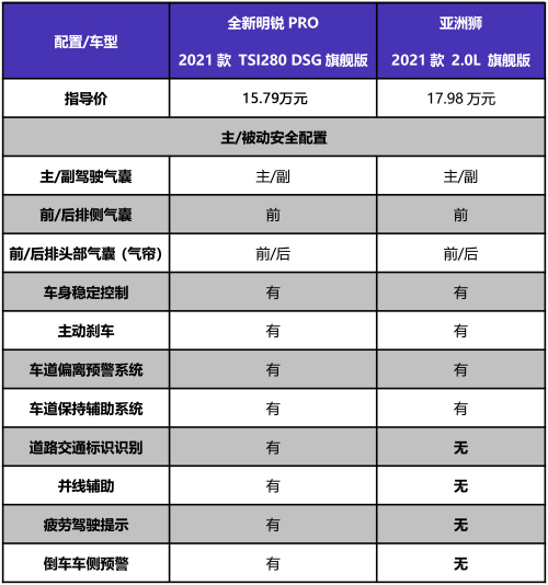 主被動(dòng)安全配置方面,眾所周知在TNGA架構(gòu)下,每一款豐田新車(chē)都擁有極高的配置規(guī)格,雖然亞洲獅已經(jīng)表現(xiàn)得無(wú)可挑剔了,但全新明銳PRO無(wú)疑做得要更完美一些。由此可見(jiàn),全新明銳PRO的安全性要比亞洲獅更高,行駛起來(lái)更加踏實(shí)、放心。