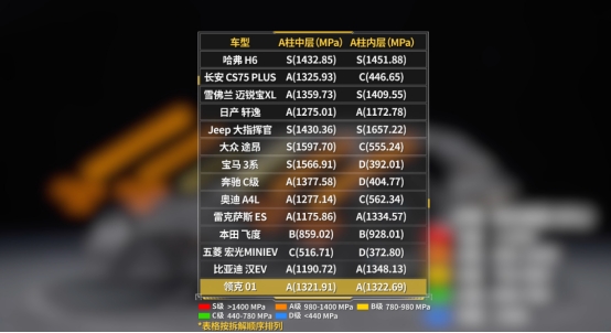 根據(jù)《懂車大爆炸》的橫向測評,充分展現(xiàn)出第三代哈弗H6的優(yōu)越數(shù)據(jù)。第三代哈弗H6的A柱中層鋼材強(qiáng)度達(dá)到1432MPa,這個數(shù)值跟30萬售價的Jeep大指揮官大體相同。同時,B柱中層鋼材強(qiáng)度跟A柱相當(dāng),這也讓第三代哈弗H6在側(cè)面防護(hù)方面,與30萬級別車型具有相同的標(biāo)準(zhǔn)。