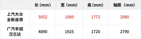 在選擇一款7座SUV時,每一排座椅的乘坐空間都會是消費者在購車時所看重的。無論是上汽大眾全新途昂還是漢蘭達,它們的尺寸在同價位車型中都是可圈可點的,這也為營造大空間打下了不錯基礎(chǔ)。通過下面的表格大家可以看到,在直接決定車內(nèi)空間的寬度和軸距上,上汽大眾全新途昂是更有優(yōu)勢的一方,寬度比漢蘭達多出64mm,軸距更是長了近200mm。