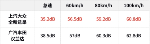 首先是噪音測試,我們會用專業(yè)的噪音測量儀來分別對兩車進行怠速、60km/h、80km/h和100km/h車速下的車內(nèi)噪音測量。測試結(jié)果顯示,兩者的隔音效果都處同級中上游水平。相比之下,上汽大眾全新途昂的靜謐性表現(xiàn)都比漢蘭達更好,測試成績?nèi)骖I(lǐng)先。尤其是在時速100km/h時,上汽大眾全新途昂僅測出60.8dB的噪音值,成績非常優(yōu)秀。