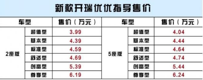 開瑞汽車致力于關(guān)注用戶需求,面對(duì)城配市場(chǎng)新格局,開瑞深入用戶使用場(chǎng)景,深挖用戶痛點(diǎn),推出了新款開瑞優(yōu)優(yōu)加長(zhǎng)版。提供2座/5座版車型選擇,滿足載貨與載人不同需求,同時(shí)在動(dòng)力性、空間承載、舒適性等方面做了全面升級(jí),3.99萬(wàn)起的售價(jià),極具市場(chǎng)競(jìng)爭(zhēng)力。