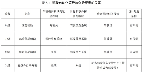 這是工信部對(duì)于汽車(chē)駕駛自動(dòng)化的分級(jí)標(biāo)準(zhǔn),在動(dòng)態(tài)技術(shù)任務(wù)接管那欄可以看到L3級(jí)別的自動(dòng)駕駛的目標(biāo)是“接管后成為駕駛員”,也就是真正意義上的實(shí)現(xiàn)自動(dòng)駕駛,而L0-L2還屬于半自動(dòng)駕駛階段。