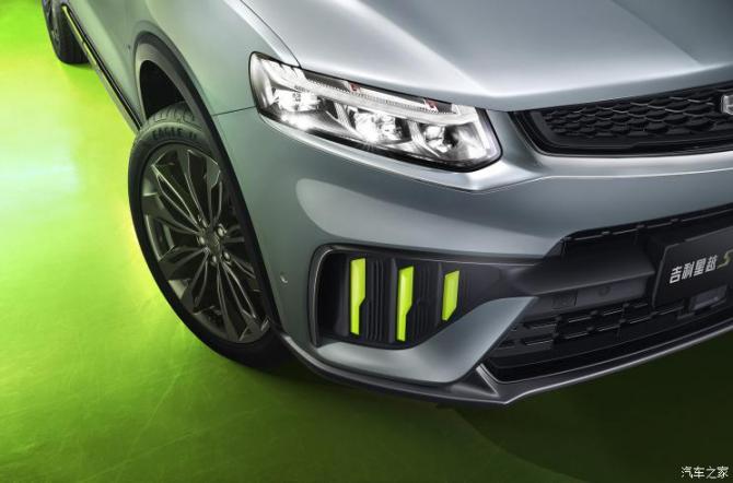 星越S的整體造型繼承了吉利家族的經(jīng)典設(shè)計(jì)語言,并在此前基礎(chǔ)上增加了不少個(gè)性元素,凸顯運(yùn)動屬性。具體來看,外觀方面,戰(zhàn)機(jī)灰的車身與明亮的電光綠動感套件碰撞,整體頗具機(jī)械質(zhì)感和時(shí)尚氣息。旋波能量前格柵采用熏黑疊加網(wǎng)格設(shè)計(jì),層次分明,張力十足;霧燈處采用霹靂魔爪造型飾條,三道電光綠的抓痕較具鋒芒,凌厲感十足。