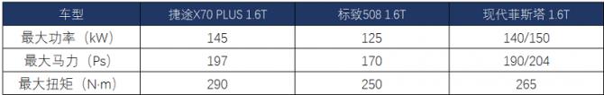 上面的數(shù)據(jù)已經(jīng)顯示,與同級(jí)別車(chē)型的1.5T發(fā)動(dòng)機(jī)相比,捷途X70 PLUS的這款1.6T發(fā)動(dòng)機(jī)的動(dòng)力輸出有著絕對(duì)領(lǐng)先的優(yōu)勢(shì)。我們不妨再橫向比對(duì)幾款知名車(chē)企的1.6T,來(lái)看看它的具體表現(xiàn)。
