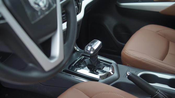 中控下方可以看到四驅(qū)功能切換旋鈕和駕駛模式按鍵,而最為引人注意的是這臺(tái)車配備了自動(dòng)變速箱,預(yù)計(jì)與自動(dòng)版銳騏6一樣采用的是采埃孚8AT,這也意味著平底貨箱版銳騏6上市后,將會(huì)是目前市面唯一一款配備自動(dòng)擋的平底車型。