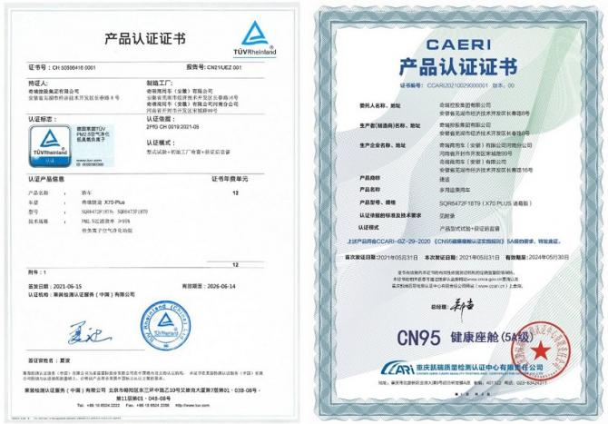 就在前不久,捷途X70諸葛版先后獲得了中國汽研“CN95健康座艙”5A級認(rèn)證,以及德國萊茵TüV的健康認(rèn)證。值得一提的是,捷途X70諸葛版成為國內(nèi)首款獲得德國萊茵TüV帶負(fù)離子空氣凈化功能認(rèn)證的車型。