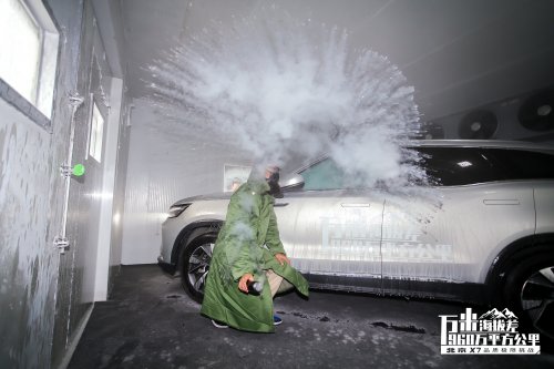 完成五城極限挑戰(zhàn)的北京X7在成都進(jìn)行低溫艙挑戰(zhàn)。現(xiàn)場打造的低溫艙內(nèi)部溫度低至-50℃,真實(shí)還原珠峰海拔8千米以上的大氣溫度。低溫艙內(nèi),靜置12小時(shí)的北京X7已經(jīng)全身覆蓋冰衣,艙內(nèi)綠植也已經(jīng)掛霜。擺放在艙內(nèi)的三種液體分別是,冰點(diǎn)為0℃普通水、冰點(diǎn)為-35℃的防凍玻璃水和冰點(diǎn)-40℃的高度白酒,它們均已結(jié)冰?,F(xiàn)場工作人員甚至在低溫艙內(nèi)表演“潑開水結(jié)冰”。