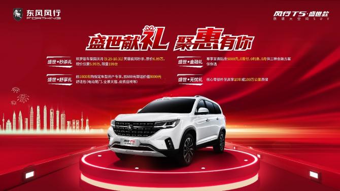 顏值出眾、空間超大、動(dòng)力強(qiáng)勁、配置豐富、品質(zhì)卓越,風(fēng)行T5盛世款售價(jià)6.89萬(wàn)起,是大家庭高品質(zhì)出行的不二之選。更令人心動(dòng)的是,上市期間購(gòu)買風(fēng)行T5盛世款,即可享“盛世獻(xiàn)禮 聚惠有你”的驚喜大禮。家人和美景,都是假期不可辜負(fù)的期待。借著黃金周,趁著黃金季,帶上家人和朋友,與風(fēng)行T5盛世款一道開(kāi)啟高品質(zhì)自駕之旅。