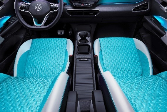 內(nèi)飾部分,大眾ID.3整個(gè)中控臺(tái)采用了極富有立體雕塑感的裝飾面板,配合上10英寸的懸浮式中控大屏,使得整個(gè)座艙看起來(lái)未來(lái)感非常強(qiáng)。車內(nèi)采用了30色氛圍燈設(shè)計(jì),豐富的燈光選擇可以讓車內(nèi)燈光隨心而變。此外,大眾ID.3的內(nèi)飾材料采用了全新的復(fù)色工藝設(shè)計(jì),就以那款極光律動(dòng)的內(nèi)飾設(shè)計(jì)為例,其座椅材料使用藍(lán)色和黃色紗線,配合金屬質(zhì)感,在不同的角度和光線之下可以呈現(xiàn)出非常豐富的色彩和光影的變化,讓這個(gè)內(nèi)飾光彩的視覺(jué)效果變化非常強(qiáng)。