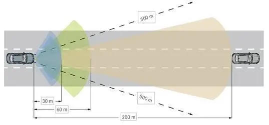 奔馳作為老派傳統(tǒng)廠商的代表,技術(shù)路線必須安全第一,所以DISTRONIC領(lǐng)航限距系統(tǒng)核心是一個遠距雷達,我沒有記錯的話應(yīng)該是77GHz的,E級就是這個。