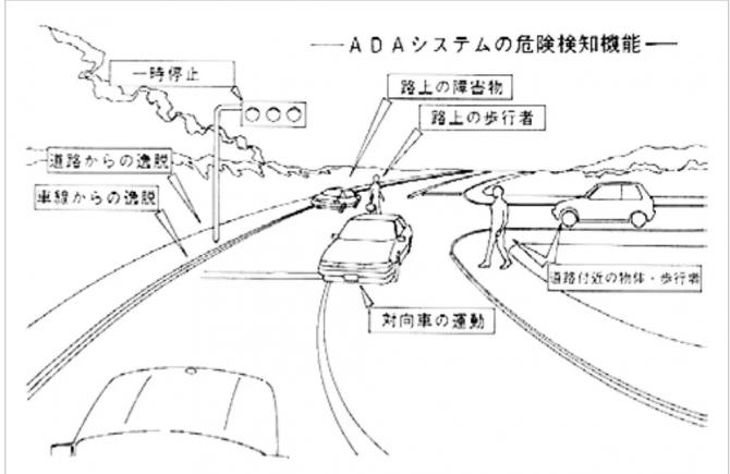 1991年東京車展發(fā)布Active Driving Assist主動式駕駛輔助系統(tǒng),簡稱ADA;