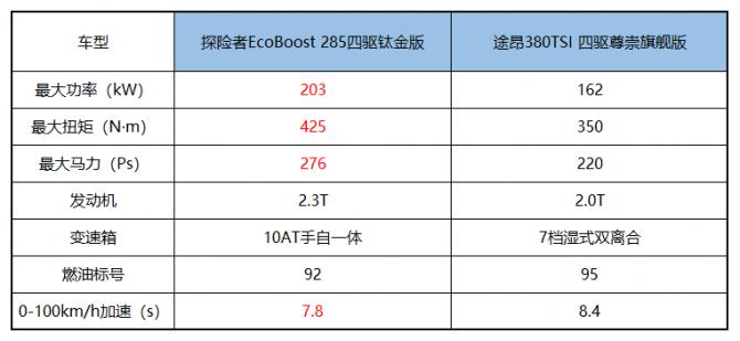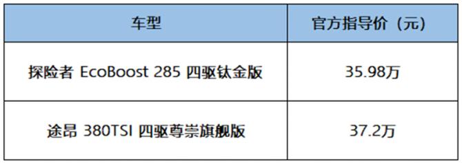 中大型SUV在國(guó)內(nèi)汽車(chē)市場(chǎng)長(zhǎng)期以來(lái)熱度不減,正所謂“存在即合理”,究其原因,中大型SUV幾乎完美契合了中國(guó)消費(fèi)者一車(chē)N用的購(gòu)車(chē)需求,在30萬(wàn)元汽車(chē)消費(fèi)市場(chǎng)中,一臺(tái)自己開(kāi)著舒坦,全家坐著寬敞的中大型SUV,可謂是消費(fèi)者的不二之選。而在購(gòu)車(chē)過(guò)程中,面對(duì)福特探險(xiǎn)者與大眾途昂兩位同級(jí)別佼佼者,令消費(fèi)者紛紛犯了難。鑒于大眾途昂V6車(chē)型上市不久,實(shí)車(chē)交付不多,所以此次選擇福特探險(xiǎn)者EcoBoost 285四驅(qū)鈦金版(售價(jià)35.98萬(wàn)元)與大眾途昂380TSI 四驅(qū)尊崇旗艦版(售價(jià)37.20萬(wàn)元)進(jìn)行對(duì)比,看看究竟誰(shuí)能更勝一籌。