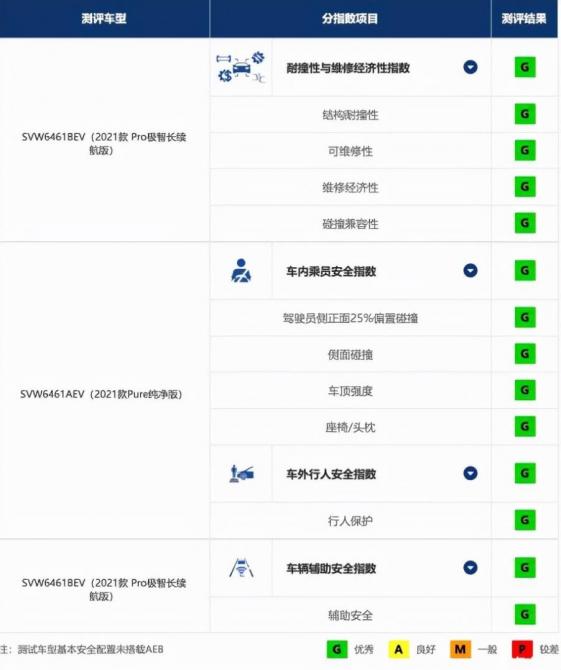 從測評結(jié)果來看,整體表現(xiàn)是不錯的,5款車型的氣囊都沒有起爆,比起2020年的17%提升是比較大的。在車內(nèi)乘員以及車外行人方面,五款車型均獲得了優(yōu)秀(G),這一點(diǎn)是讓人比較欣慰的。