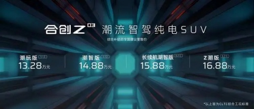 作為造車新勢力中的一員,對比“蔚小理”等一線造車新勢力,合創(chuàng)汽車顯得十分“低調(diào)”。直到全新的緊湊型SUV——合創(chuàng)Z03的到來,13.28-16.88萬元的售價,再加上NEDC超500km的續(xù)航,也確實(shí)在一定程度上給合創(chuàng)汽車帶來了不少的聲量。