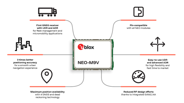 兼具UDR和ADR功能的NEO-M9V具有出眾的定位性能和設(shè)計(jì)靈活性,幫助客戶根據(jù)終端客戶的需求,快速找到最佳解決方案。