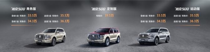 11月19日,坦克500在廣州車展正式開(kāi)啟全國(guó)預(yù)售,共推出商務(wù)版、運(yùn)動(dòng)版及定制版三個(gè)版本,同時(shí)提供5座、7座車型可選,預(yù)售價(jià)格為33.5萬(wàn)元-39.5萬(wàn)元。同時(shí),與用戶共創(chuàng)的坦克500黑武士版本同步開(kāi)啟預(yù)售,預(yù)售期限量發(fā)售500臺(tái),預(yù)售價(jià)格為36.5萬(wàn)元。針對(duì)預(yù)售訂購(gòu)用戶,坦克品牌還推出了驚喜4重禮,以及6項(xiàng)限量福利政策。坦克品牌唯一指定預(yù)售渠道為坦克APP。