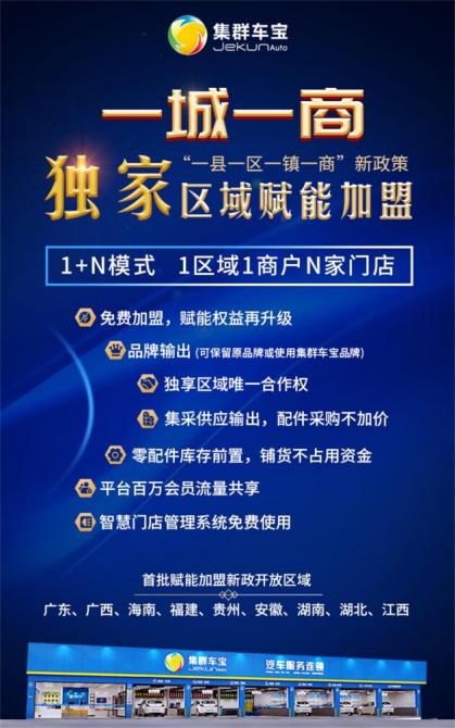 除了獨(dú)家區(qū)域唯一合作權(quán),集群車寶賦能加盟體系還為傳統(tǒng)汽服門(mén)店的“獨(dú)家”權(quán)益做了更多的保障,比如:可以保留原有品牌(或使用集群車寶品牌)、免收加盟費(fèi)、管理系統(tǒng)和標(biāo)準(zhǔn)化流程輸出免費(fèi)、配件供應(yīng)不加價(jià)等權(quán)益,以更加靈活、試錯(cuò)成本低的賦能加盟體系保障傳統(tǒng)汽服門(mén)店在區(qū)域經(jīng)營(yíng)中擁有更廣闊的前景!
