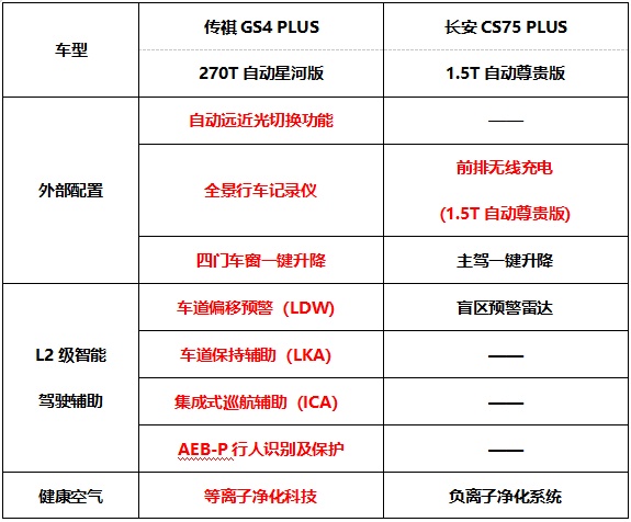 而在13萬級的傳祺GS4 PLUS 270T自動星河版和長安CS75 PLUS 1.5T自動尊貴版的比較中,雖然長安CS75 PLUS價格略低,但整體來看,傳祺GS4 PLUS的煥新升級幅度更大,如在此前星耀版的基礎(chǔ)上,增加了自動遠近光燈切換功能、四門車窗一鍵升降、L2級智能駕駛輔助、等離子凈化科技以及超感交互智能座艙等更高科技、更智能化的配置,配置價值遠超長安CS75 PLUS 13000元,傳祺GS4 PLUS顯然更劃算。