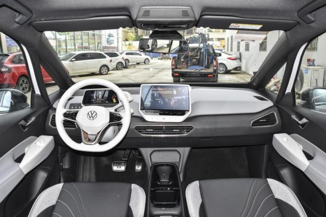 再就是內(nèi)飾,坐進(jìn)ID 3車內(nèi)后,第一反應(yīng)是檔次感很出色,因?yàn)樾萝嚥捎昧税咨鳛閮?nèi)飾主旋律,這本是奔馳S級(jí)等頂級(jí)豪車慣用的套路,包括ID 3的內(nèi)部用料也極為厚道,所以說豪華氛圍確實(shí)沒得挑。當(dāng)然中控臺(tái)設(shè)計(jì)風(fēng)格也和以往大眾車型不同,像5.3英寸液晶儀表+10英寸懸浮式中控屏,再配合AR-HUD抬頭顯示系統(tǒng)和30色氛圍燈,自然能夠帶來出色駕乘氛圍,科技感更沒問題。