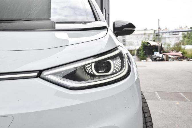 首先來看設(shè)計(jì),在外觀方面,上汽大眾ID 3采用的是ID系列最新家族語言,畢竟它也是作為該系列首款車型,只是引進(jìn)國內(nèi)稍晚了點(diǎn)。從前臉不難看出,整車風(fēng)格比較簡潔,像圓潤飽滿的封閉式處理,既能夠彰顯出它純電動(dòng)車型的身份,也能夠帶來更為時(shí)尚的視覺體驗(yàn)。尤其是看到兩側(cè)大燈組,IQ.Light矩陣式LED光源的應(yīng)用下,視覺效果驚艷且實(shí)用性更佳,配合貫穿式LED燈帶,辨識(shí)度絕對沒問題。