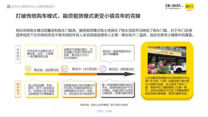 下沉市場(chǎng)不缺機(jī)會(huì)。CBNData在《2019小鎮(zhèn)青年線上消費(fèi)洞察報(bào)告》中指出,小鎮(zhèn)青年線上購(gòu)車需求旺盛,隨著互聯(lián)網(wǎng)購(gòu)車平臺(tái)的出現(xiàn)推動(dòng)汽車消費(fèi)下沉,融資租賃模式的互聯(lián)網(wǎng)購(gòu)車平臺(tái)成為小鎮(zhèn)青年擁有人生第一輛車的不二選擇,小鎮(zhèn)青年成為三四線城市互聯(lián)網(wǎng)購(gòu)車主力人群。