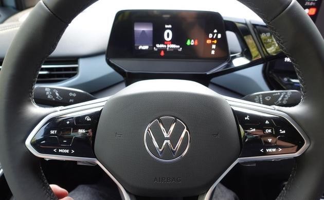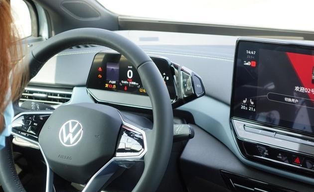 初看ID.4 X會(huì)被它的5.3英寸儀表顯示屏吸引,這塊顯示屏只能顯示重要的行駛安全相關(guān)信息,以及檔位信息,并且擋位切換就在方向盤(pán)前邊,手感清脆上手也容易,充滿了科技感。首次在大眾車型上使用12英寸中控屏?xí)械襟@喜,智慧車聯(lián)系統(tǒng)4.0及IQ. Drive自動(dòng)駕駛輔助為這臺(tái)車增添了科技樂(lè)趣。