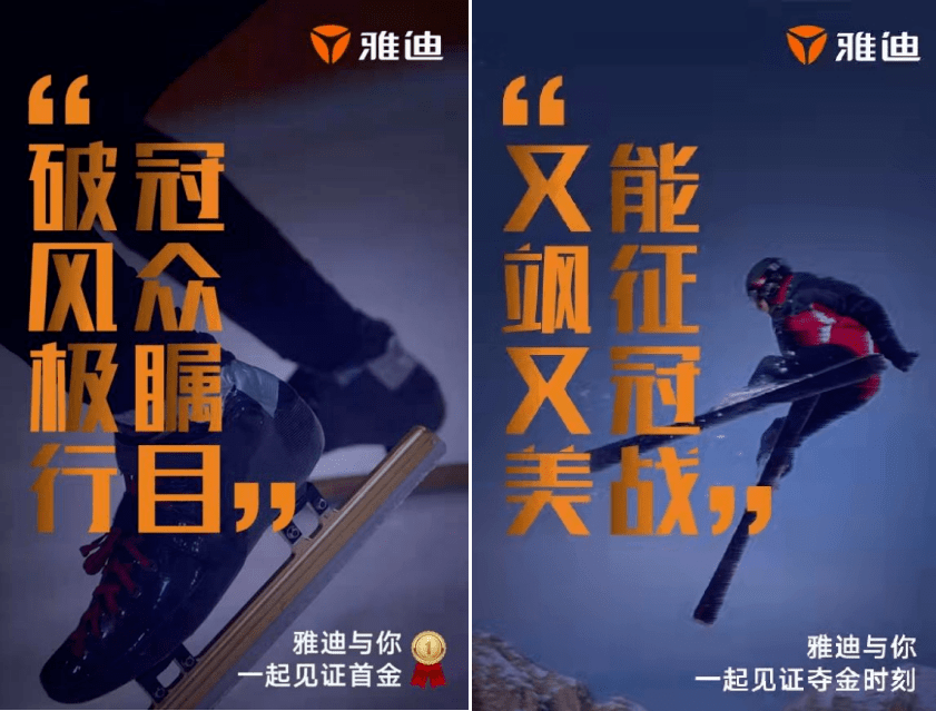 在此次冰雪運(yùn)動(dòng)營(yíng)銷(xiāo)活動(dòng)中,雅迪電動(dòng)車(chē)深度挖掘冰雪健兒經(jīng)過(guò)千錘百煉、最終實(shí)現(xiàn)夢(mèng)想奪得冠軍的故事,激活更多像他們一樣、勇敢逐夢(mèng)的年輕人心底的熱愛(ài),激發(fā)心中潛能,激勵(lì)用戶(hù)不忘初心,勇敢追夢(mèng)。