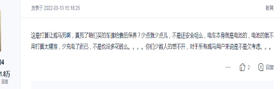 從消息中,我們可以得知,這些聲稱鎖電,并且聯(lián)名起訴的車主,大部分為威馬19年的第一批車主,并且多數(shù)都是作為運營車輛來使用,很多行駛公里數(shù)甚至超過18萬公里。這一百多名車主起訴,更多是為了自身換電的意愿,憑借消費者自身弱者的優(yōu)勢,加上一些媒體的推波助瀾,來達(dá)到讓廠商承諾換電的目的。但這些少數(shù)車主背后,其實更多車主并未感受到所謂的“鎖電”,以及對于少數(shù)車主這種行為的譴責(zé)和憤怒。