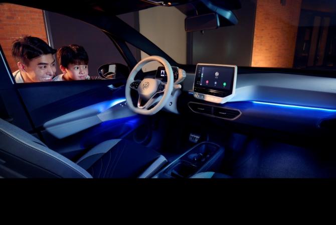 ID3的設(shè)計(jì)語(yǔ)言充滿著人性化交互理念,全新前大燈造型抒發(fā)擬人化神情,如人眼般炯炯有神。此次2022款I(lǐng)D3極智版的大燈新增了帶有迎賓喚醒和離車休眠的光效,車輛解鎖時(shí)仿佛被喚醒的孩子睜開(kāi)雙眼,進(jìn)一步增強(qiáng)擬人化神情,凸顯智能屬性,讓燈光成為一種有溫度的、能與人智能交互的伙伴。