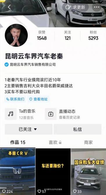 疫情反復疊加缺芯,給車市帶來重創(chuàng),門可羅雀的生意令老秦焦急又無奈,而短視頻、直播的迅猛發(fā)展,又似乎讓他嗅到了“另辟蹊徑”的可能性。今年4月,他開始將一些散落在生活中與買車、用車相關(guān)的碎片化知識,通過短視頻向外傳播,有時是自制短劇,有時是干貨分享,形式多樣。這其間,他不斷嘗試積攢流量,并逐步擴展至直播領(lǐng)域。通過直播,打通門店與消費者之間的溝通渠道,讓大家通過電波面對面溝通,主播既是消費者專業(yè)的汽車知識顧問,又是親切的老朋友,依靠直播構(gòu)建起更加牢固的信任關(guān)系。“疫情期間大家都見不著面,通過直播實時交流互動,少了微信文字的冰冷感,多的是一種有溫度的接觸”。