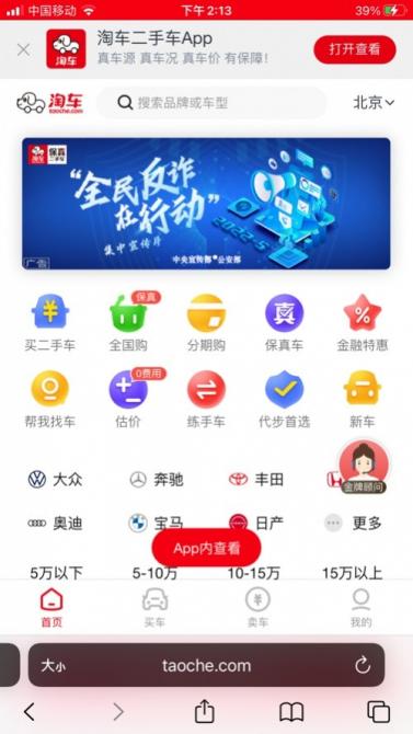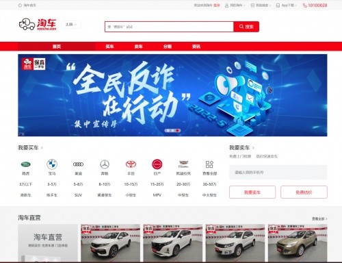 淘車二手車官網(wǎng)與app端首頁積極宣傳反詐行動