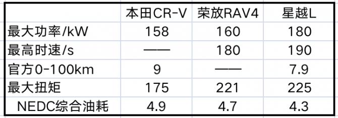 從下面的表格來看,星越L雷神Hi·X油電混動版相比本田CR-V和豐田榮放這兩款混動領(lǐng)域的老牌選手,不難發(fā)現(xiàn)雷神Hi·X油電混動版的優(yōu)勢顯而易見。無論是動力表現(xiàn)還是油耗表現(xiàn),星越L雷神Hi·X油電混動版都實現(xiàn)了碾壓。