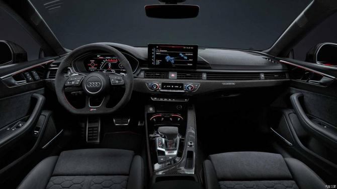 首先2023款的奧迪RS 4/RS 5在外觀上并沒有太多變化,可見部分僅為全新樣式輪圈,以及部分黑化的外觀件。更加重點的升級在于兩款車新增的Competition選裝包,提供的內(nèi)容包括比普通版降低10mm的可調(diào)懸架(最低可降低20mm)、倍耐力P Zero Corsa輪胎以及RS運動排氣。這套新的排氣系統(tǒng)擁有更大的聲浪,并移除了部分車內(nèi)隔音材料,以便減重并增加聲浪的“氛圍感”。