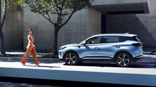 瑞虎7 PLUS前臉下側(cè)采用了一個貫穿式的橫向飾條,與翼子板上方的T形標志同色,不僅是鯤鵬動力的標志,同樣也在視覺上也進行了橫向拉伸,讓整車看起來更加的寬大。側(cè)面來看,就更容易發(fā)現(xiàn)這臺車的硬漢氣質(zhì),剛勁有力的側(cè)面線條,勾勒出這款車硬派而富有型格的外觀,頂部還配備了行李架,加上19寸大輪轂的襯托,雖然是一臺緊湊型SUV,但是氣勢上卻不輸半分。瑞虎7 PLUS還有香草藍配色可選,也更契合年輕人的口味。