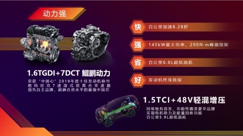 動力方面,奇瑞瑞虎7 PLUS搭載了1.5T和1.6T兩種發(fā)動機(jī),車尾的“290T”代表的是它的最大扭矩,另外它最大功率145kW。瑞虎7 PLUS的這臺1.6T發(fā)動機(jī)算是奇瑞的“明星機(jī)”了,它由奇瑞自主研發(fā),滿足國六B排放標(biāo)準(zhǔn),榮獲“中國心”2019年度十佳發(fā)動機(jī)稱號,其中1.6T發(fā)動機(jī)匹配格特拉克7速濕式雙離合變速箱,百公里油耗為6.3L,零百公里加速時間為8.28秒。所以對于喜歡到野外露營的人來說,爬山涉水,瑞虎7 PLUS可以輕松應(yīng)對。