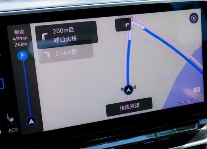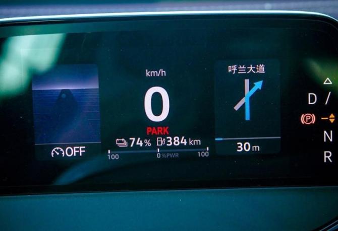 5.3英寸的液晶儀表顯示的信息包括航道保持、ACC、 續(xù)航狀態(tài)、導(dǎo)航和擋位等。