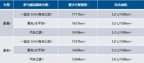 標(biāo)準(zhǔn)油箱容積:影酷(50L)、影豹(40L)*以上為2022年6月22-26日汽車之家、易車、太平洋汽車、有車以后、一起去SUV在鉅浪混動(dòng)GMC2.0一箱油極限挑戰(zhàn)中的實(shí)測(cè)成績(jī)。