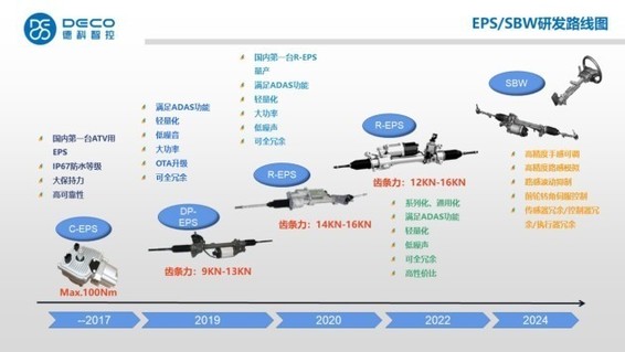 以下是德科智控在商用車方面的研發(fā)線路圖,即產(chǎn)品迭代方式,預(yù)計(jì)2024年可實(shí)現(xiàn)全冗余SBW的量產(chǎn)。