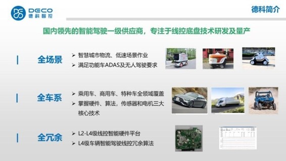在線控轉(zhuǎn)向方面,德科智控已實(shí)現(xiàn)了在低速場景和干線物流所需的智能轉(zhuǎn)向產(chǎn)品的批量生產(chǎn)。