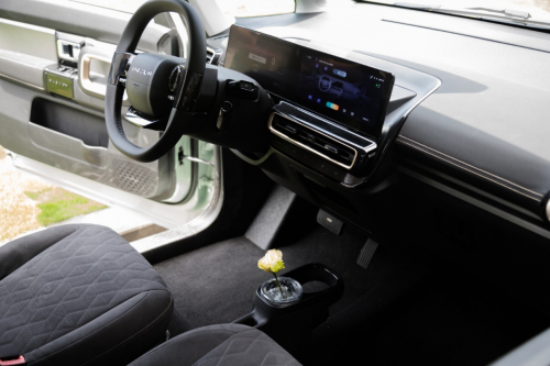 內(nèi)飾上延續(xù)了科技感, 2023款 KiWi EV座艙采用了未來銀、星際黑和兩種配色,內(nèi)飾材質(zhì)上多采用高端麂皮材料,并且搭配了由由10.25英寸儀表盤+10.25英寸觸控屏組成的,全新一體式“瀑布”雙聯(lián)屏。