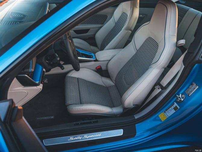 新車基于現款保時捷911 Carrera GTS進行打造,其外觀采用專屬的Sally Blue Metallic車漆涂裝,輪圈樣式也是重新設計使其與電影中的形象保持一致。此外,新車還在側窗處增加了專屬銘牌,甚至輪胎氣門也被更換為專屬的《賽車總動員》LOGO。新車還存在一個彩蛋,就是當車尾擾流板展開時,還能看到專屬于莎莉的同款紋身拉花。