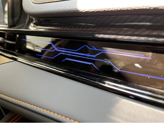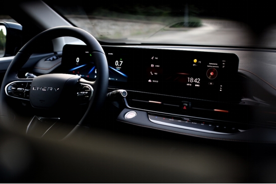 進(jìn)入車內(nèi),艾瑞澤5 GT的中控臺很有科技感,全液晶儀表和大尺寸的中控屏組合形成貫穿式的10.25吋的雙聯(lián)屏,配合D字型平底運動式方向盤,瞬間提升了車內(nèi)的動感與質(zhì)感。我們再沿著平底方向盤,視線向前方移動,清晰可見有鋁合金質(zhì)感的換擋撥片,整體視覺沖擊力得到了提升。除此之外,艾瑞澤5 GT還配備了無極變色音樂律動的機(jī)甲光影式設(shè)計中控飾板。