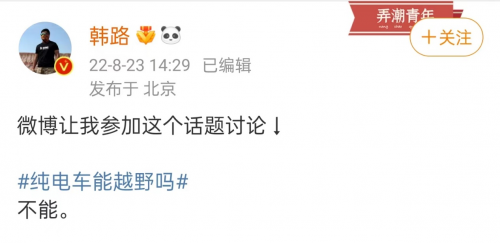 車圈大佬直截了當(dāng)?shù)膬蓚€(gè)大字評(píng)論,就內(nèi)涵了當(dāng)下純電越野技術(shù)路線的不成熟。