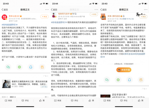 這話題也曾在微博上發(fā)酵,話題下的評(píng)論清一色地表達(dá)了對(duì)當(dāng)下純電越野的不自信。總結(jié)起來(lái),當(dāng)下純電不能越野,最根本的原因在于越野與電的先天矛盾尚未解決: