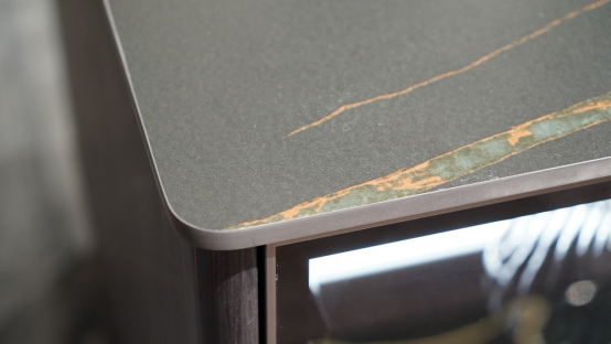 細(xì)節(jié)之處,最見真章。在廚房空間中,「云墨」巖板臺(tái)面采用圓角設(shè)計(jì),細(xì)致打磨過的轉(zhuǎn)角,觸感光滑,凸顯圓潤美感,同時(shí),還能防止老人和小孩磕碰,提高空間安全指數(shù)。