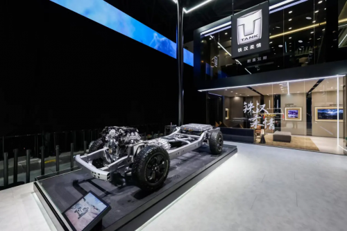 此外,為了應(yīng)對深度越野場景中的碰撞、涉水,越野超級混動架構(gòu)將電池置于最安全的后備箱大梁,并增設(shè)了合金防撞梁,能夠滿足北美嚴(yán)苛的80km/h追尾碰撞測試,相比純電越野電池置于底盤中部的做法,顯然要周全、安心得多。