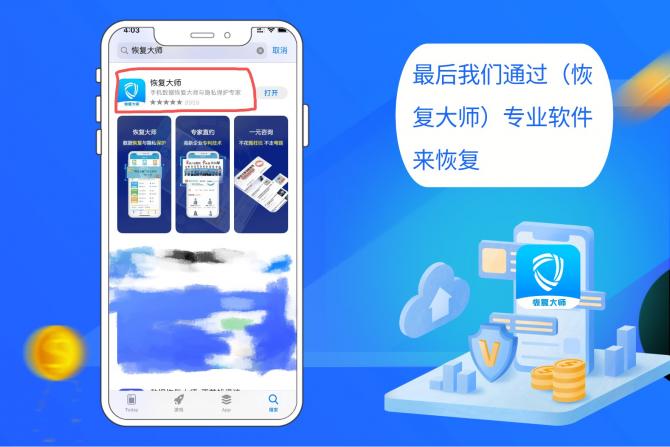 蘋果手機用戶可以打開APP Store搜索【恢復大師-手機數(shù)據(jù)恢復專家】下載,打開軟件選擇微信好友預約工程師即可。安卓手機用戶可以在手機應用市場或者應用寶搜索【恢復大師】,直接下載,打開軟件選擇數(shù)據(jù)恢復下單就行。注意:下載之前認準下圖藍色的軟件圖標,千萬別下錯了!