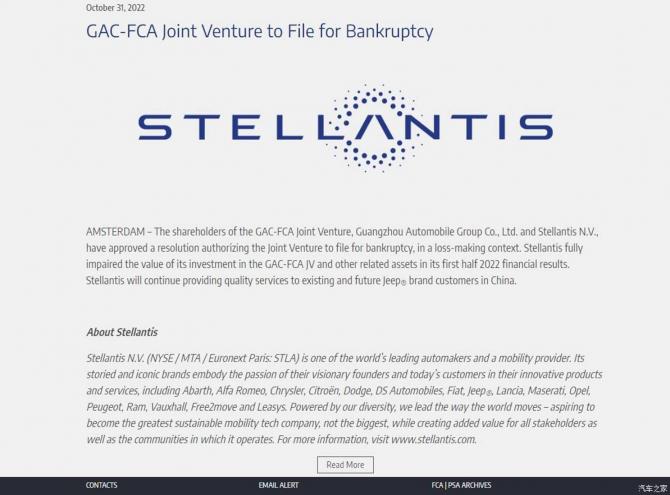 從官方稿件上看,廣汽菲克合資企業(yè)、廣汽集團(tuán)有限公司和Stellantis NV的股東已授權(quán)合資企業(yè)在虧損的情況下可申請破產(chǎn)。Stellantis已在2022年上半年的財(cái)務(wù)業(yè)績中對其在廣汽菲克的投資及其他相關(guān)資產(chǎn)進(jìn)行了全面減值。